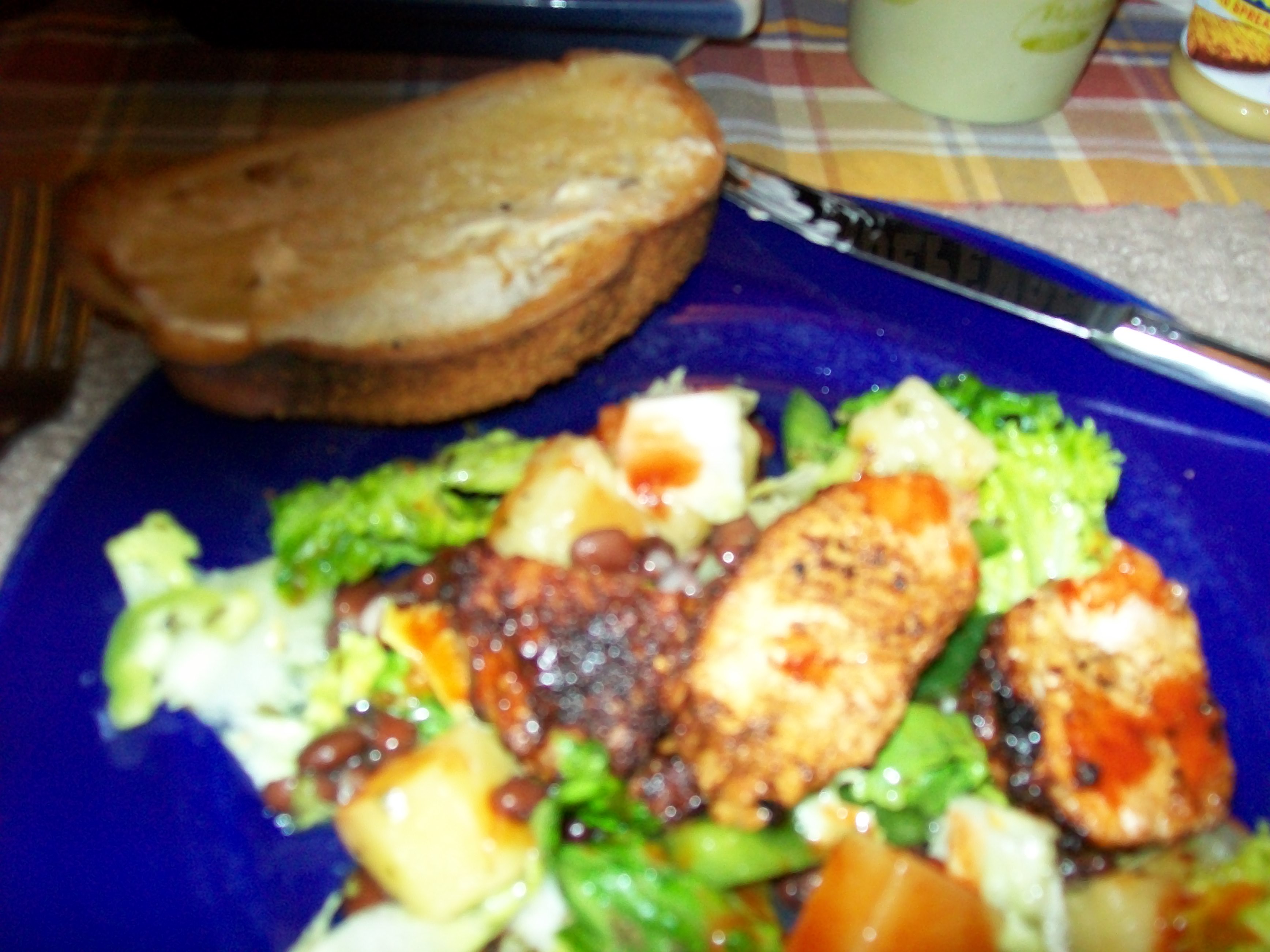 Slice pork tenderloin into half inch slices. Place pork on top of salad mixture. Leftover salad (if any) is even better the next day.