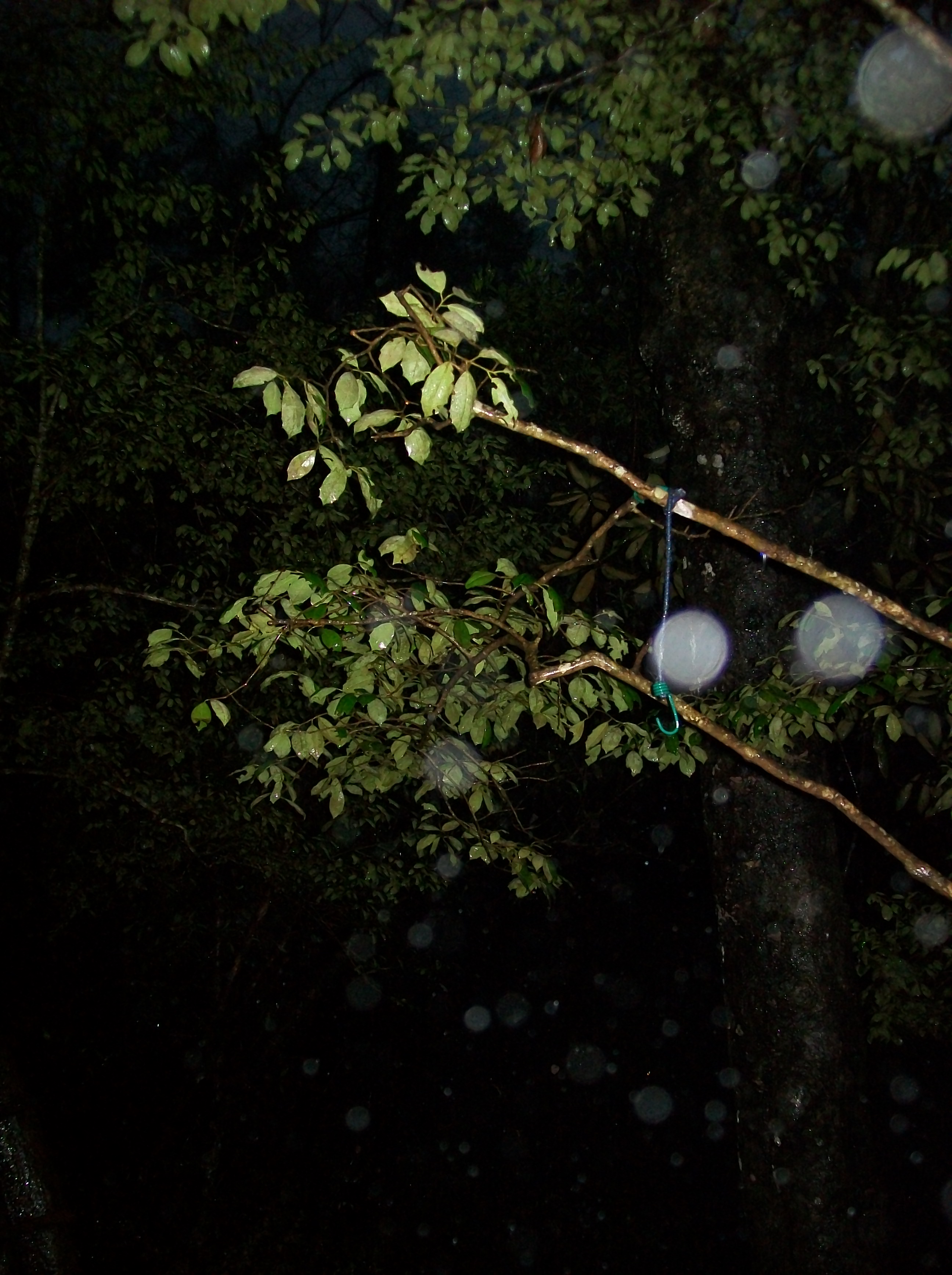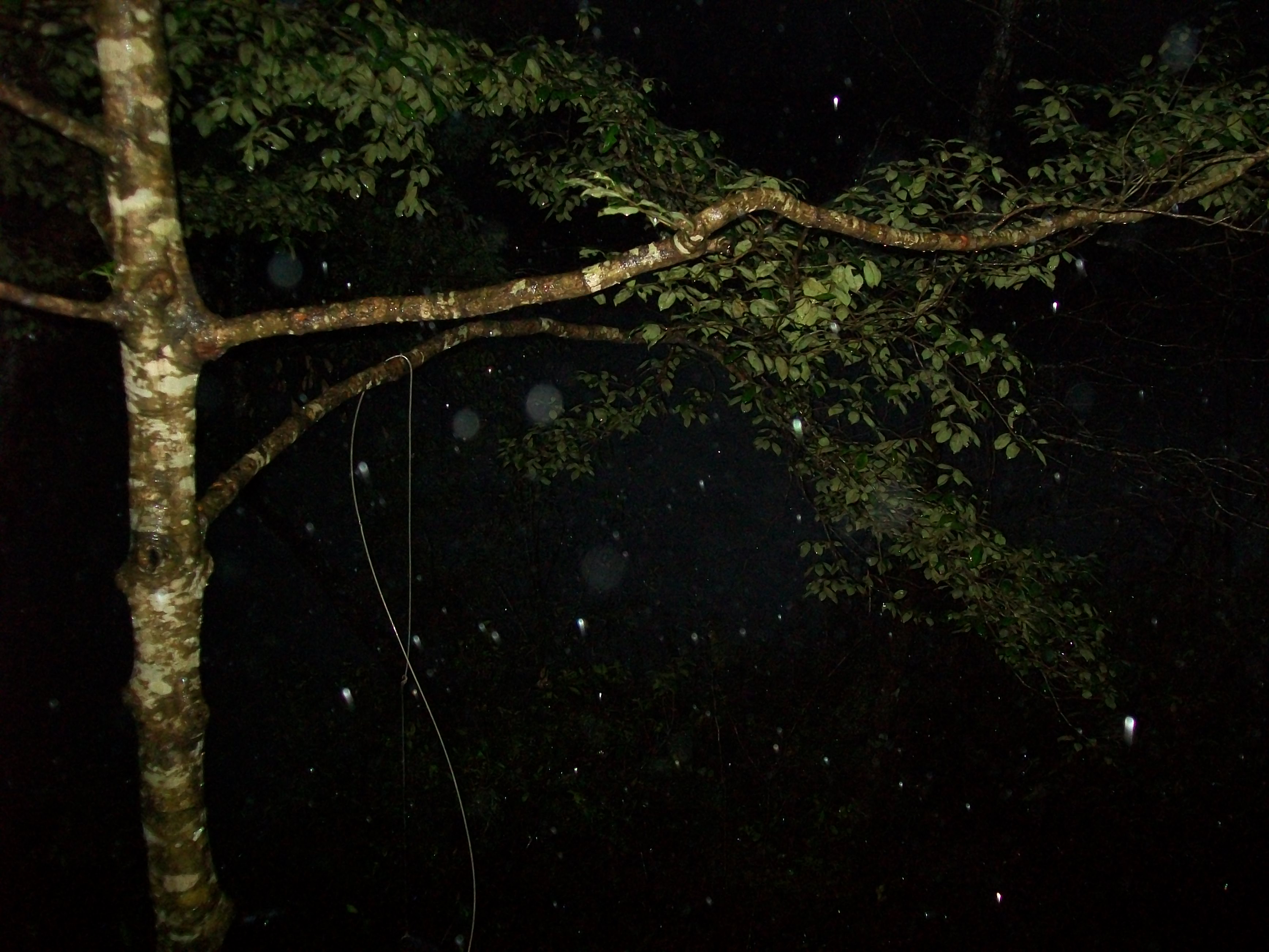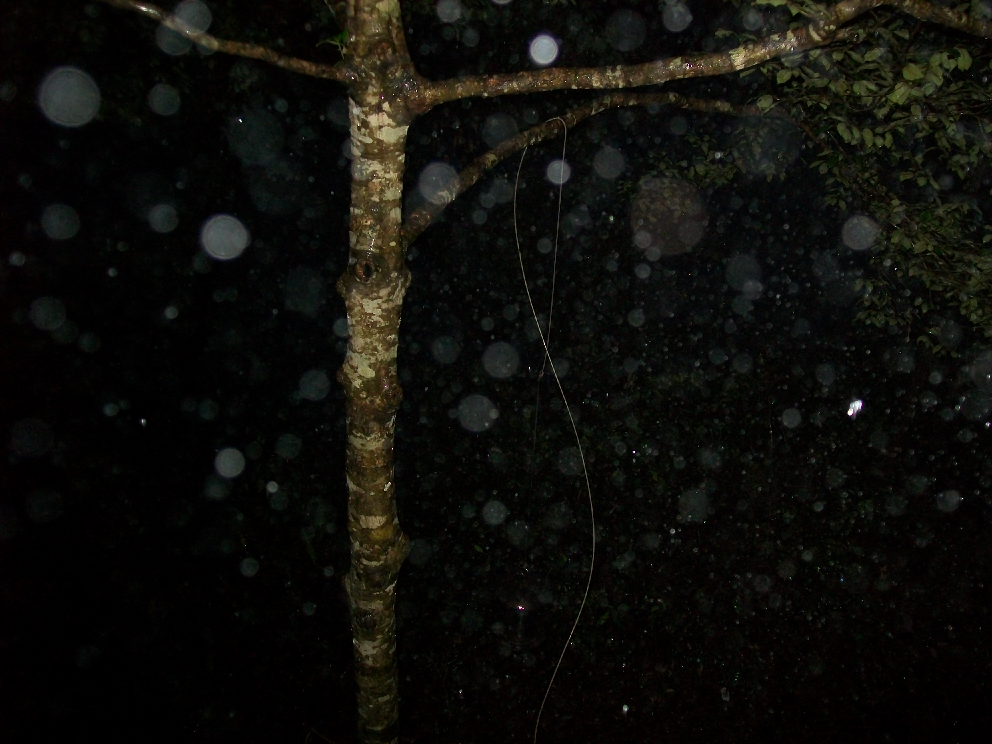 The leaning, partly submerged tree sits on the creek bank edge during dry times. You can see the water creeping towards our concrete pad under the house.