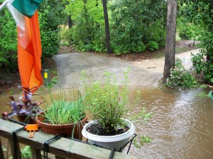 Mr. Mike dragged my plant supplies to the front entry just in case the water flooded beneath our house. The garden supplies are still a mess from Hurricane Isaac.